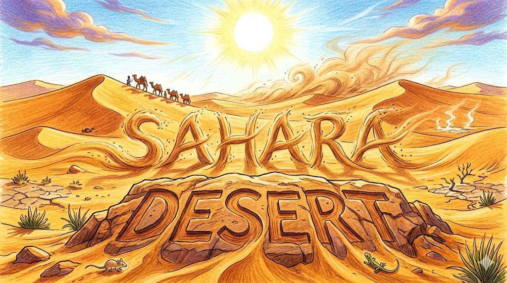 - 해석: (지리) 아프리카 북부에 위치한 세계 최대의 노년기 사막입니다. 지리나 기후 지문의 단골 소재입니다.