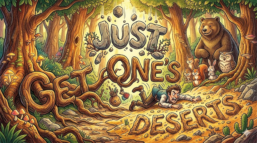 여기서 'deserts'는 먹는 '디저트(dessert)'도 아니고 '사막(desert)'도 아닙니다. '받을 만한 가치가 있는 것'을 뜻하는 옛 단어로, 'deserve(마땅히 ~할 만하다)'에서 유래했습니다. 주로 누군가 나쁜 짓을 저지른 뒤 그에 합당한 '정의로운 벌이나 대가' 를 치렀을 때 쓰는 표현입니다.