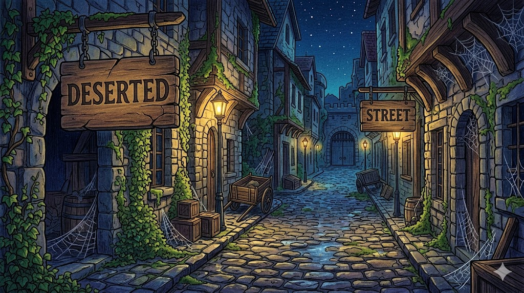 | Deserted street | 텅 빈 거리 | [dɪˈzɜːrtɪd] | 사람들이 일시적/영구적으로 모두 떠나버린 상태 |