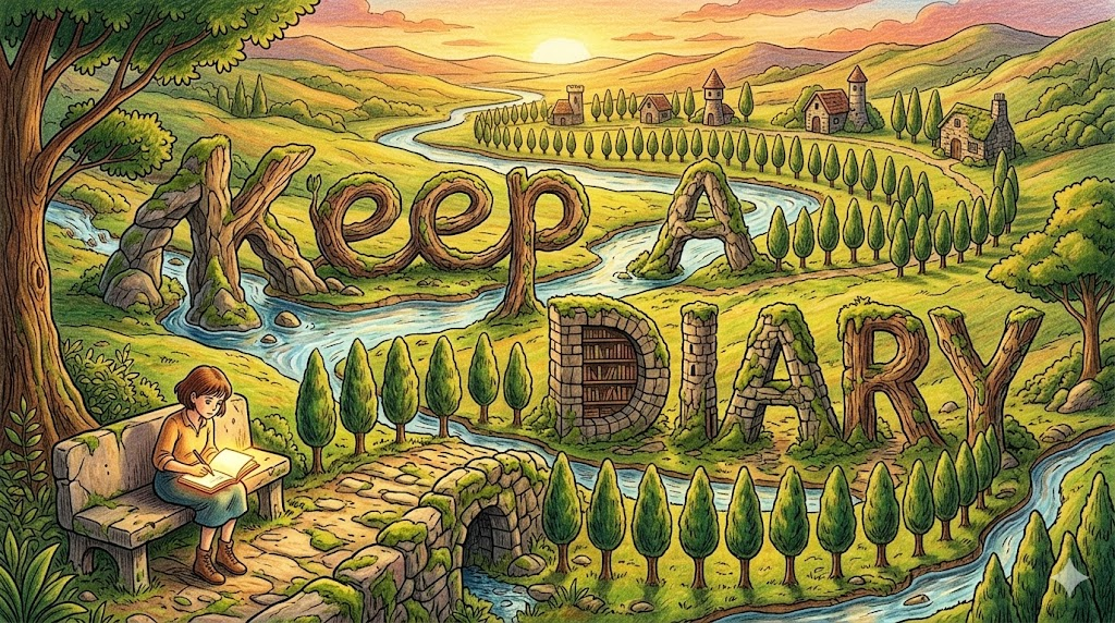 - 해석: 종이 일기장이 아닌 블로그나 앱, 웹사이트를 통해 기록하는 디지털 일기입니다. 공개 여부에 따라 소통의 창구가 되기도 합니다.