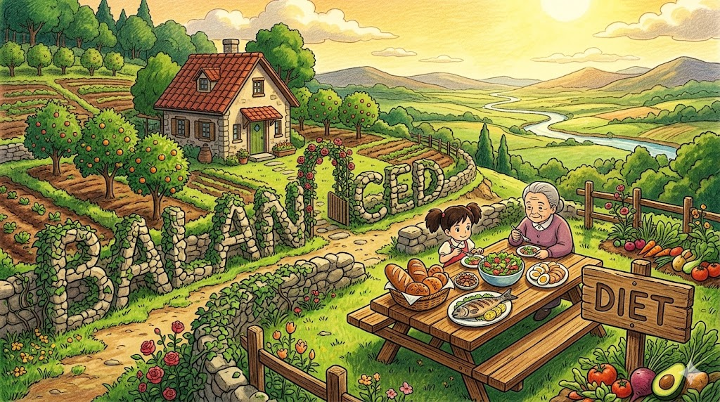 | 생활 방식 (Way of life) | 그리스어 diaita. 단순히 먹는 행위를 넘어 건강을 관리하는 전반적인 삶의 방식. | 식습관/생활 양식 |