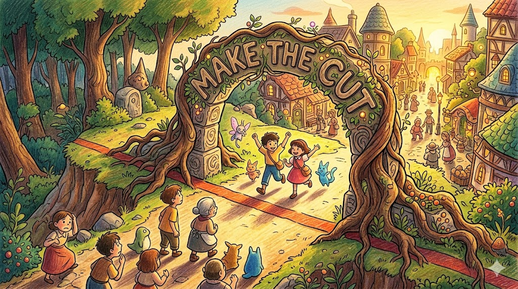make the cut [meɪk ðə kʌt]