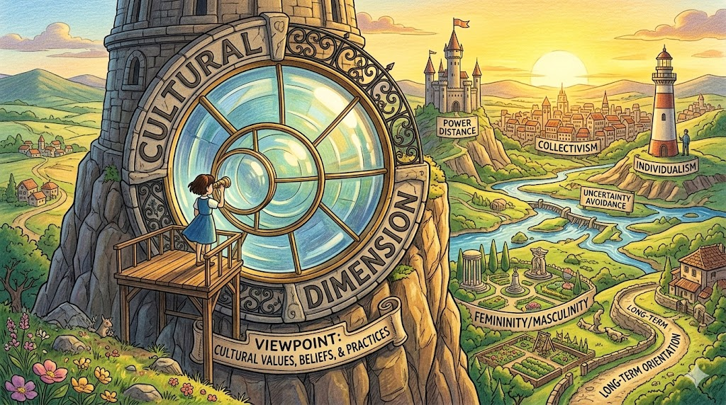 - 해석: (사회/인류학) 어떤 현상을 바라볼 때 그 밑바탕에 깔린 문화적 배경이나 특성을 고려하는 관점입니다. 홉스테드의 '문화 차원 이론'이 유명합니다.