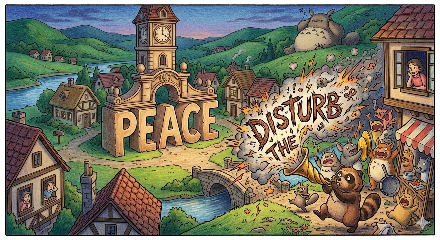 - 일반적: 조용하고 평화로운 분위기를 망치는 소음이나 무례한 행동을 비판할 때 씁니다.