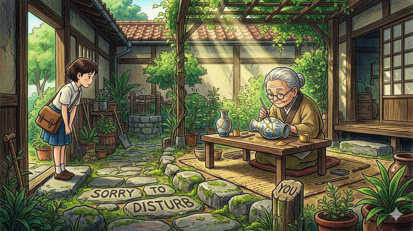 - (목소리를 낮춰주세요. 이 조용한 도서관의 평화를 깨뜨리고 싶지 않아요.)