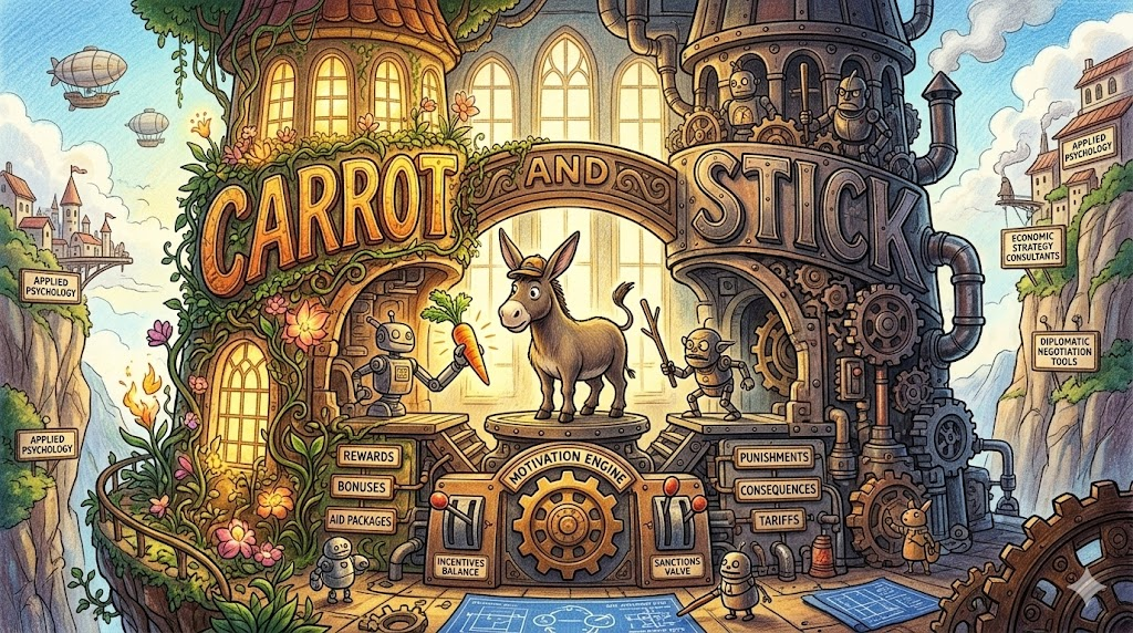 - 정치/외교: 원조를 약속(당근)하거나 제재를 가하는(채찍) 협상 전술을 말합니다.