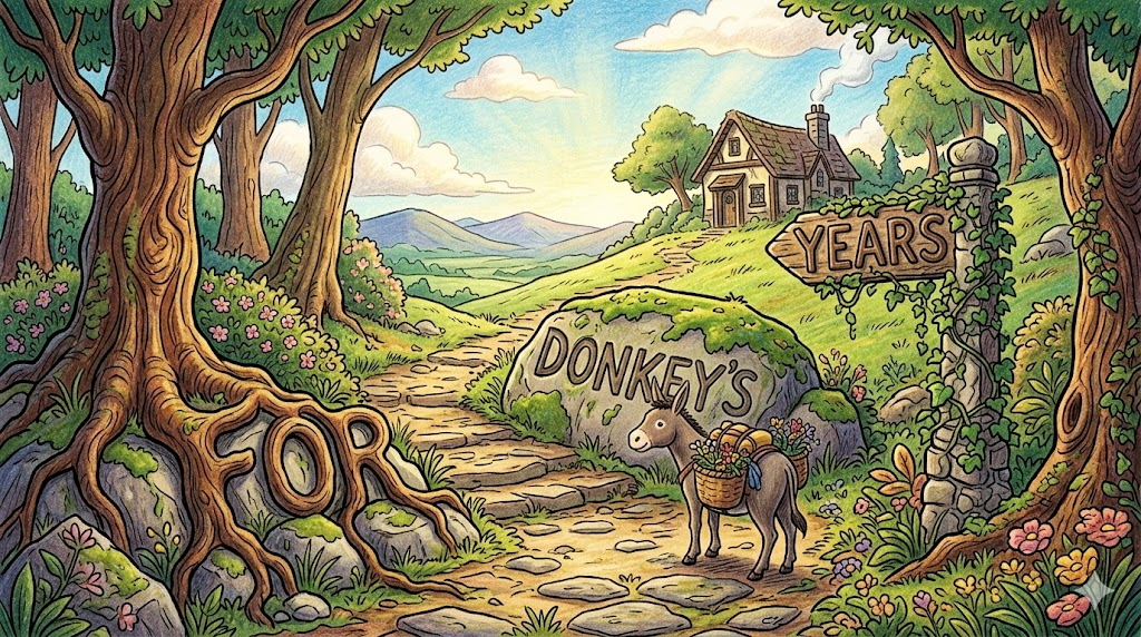 - for donkey's years: 당나귀의 귀(ears)가 아주 길다는 점에 착안하여, 'years(세월)'와 발음이 비슷한 것을 이용한 영국의 언어유희입니다. 즉, '아주 오랫동안(수년 동안)' 이라는 뜻입니다.