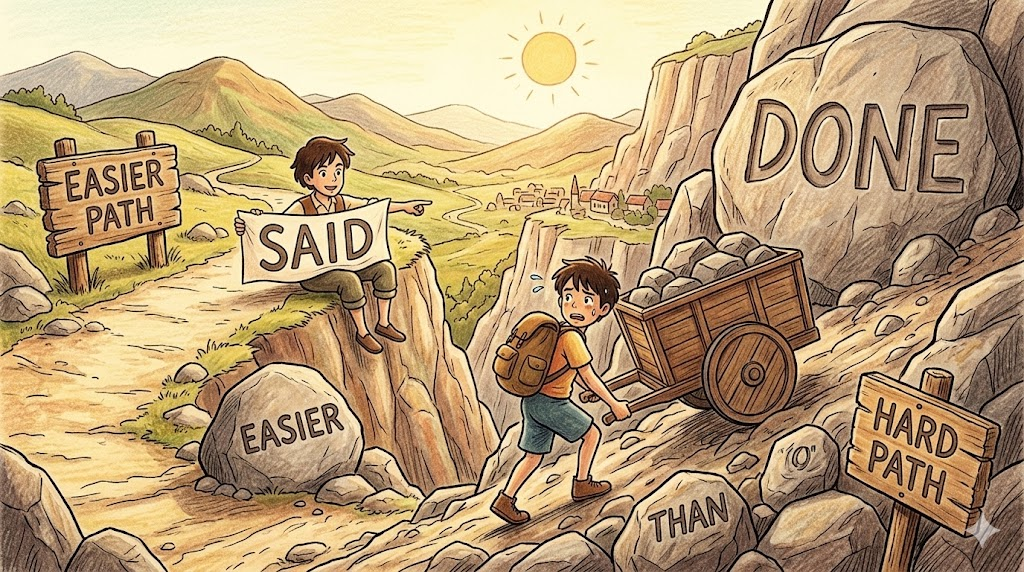 easier said than done [ˈiːziər sɛd ðæn dʌn]