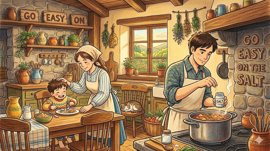 - The doctor told her to go easy on the salty food for her health.