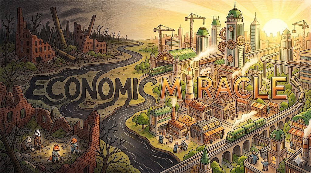 economic miracle [ˌiːkəˈnɑːmɪk ˈmɪrəkl]