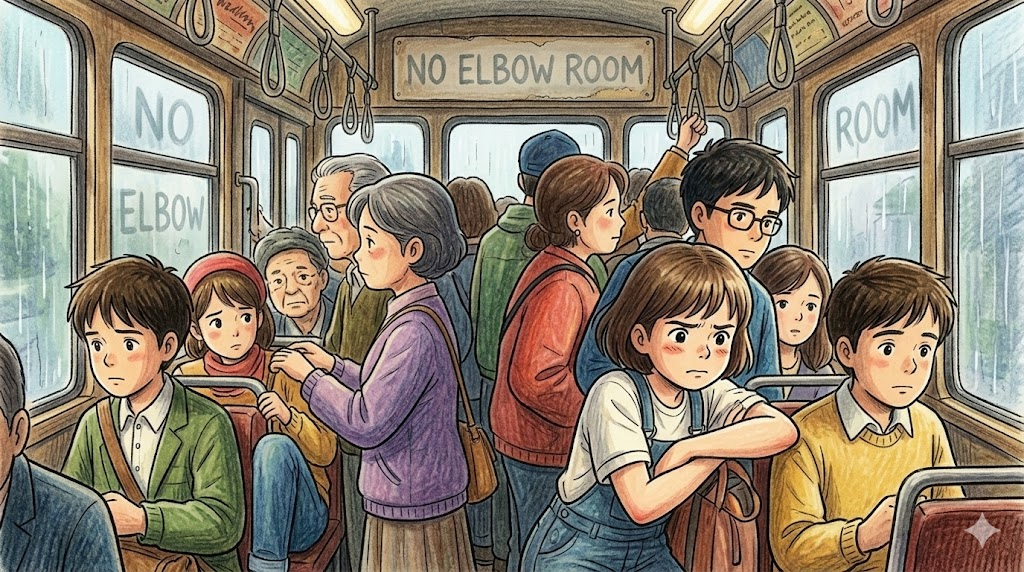 - It was so crowded on the bus that I didn't even have enough elbow room to open my bag. (버스에 사람이 너무 많아서 가방을 열 만한 공간조차 없었습니다.)