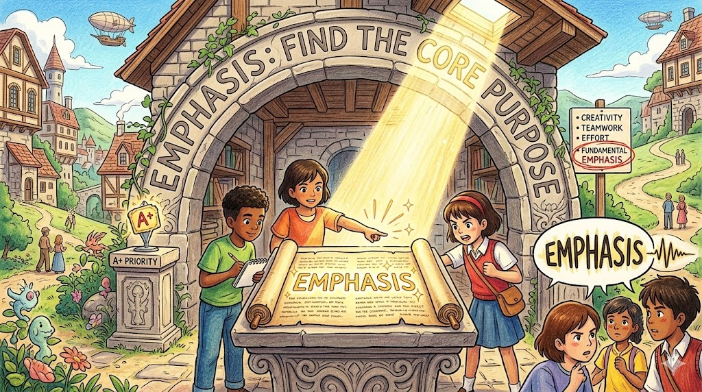 'emphasis'는 그리스어 *en-(안으로)*와 *phainein(보여주다, 빛나게 하다)*이 합쳐진 단어에서 유래했습니다. 어떤 것을 남들보다 더 눈에 띄게 '밝혀서 보여준다'는 그림에서 출발하여, 특정한 사실이나 아이디어에 부여하는 "강조", "중요성", 또는 "주안점" 이라는 뜻으로 수능 및 학술 지문에서 글의 요지를 파악하는 핵심 키워드로 사용됩니다.
