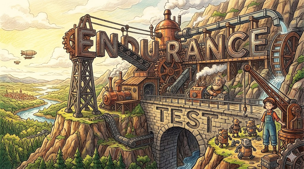 두 가지로 크게 쓰입니다. 첫째, 공학이나 산업 분야에서 기계·배터리·자동차 부품 등이 '망가지지 않고 얼마나 오래 버티는지 확인하는 물리적/기술적 실험' 을 뜻합니다. 둘째, 비유적으로 사람의 체력이나 멘탈을 한계까지 몰아붙이는 '극도로 힘들거나 지루한 과정' 을 묘사할 때 씁니다.