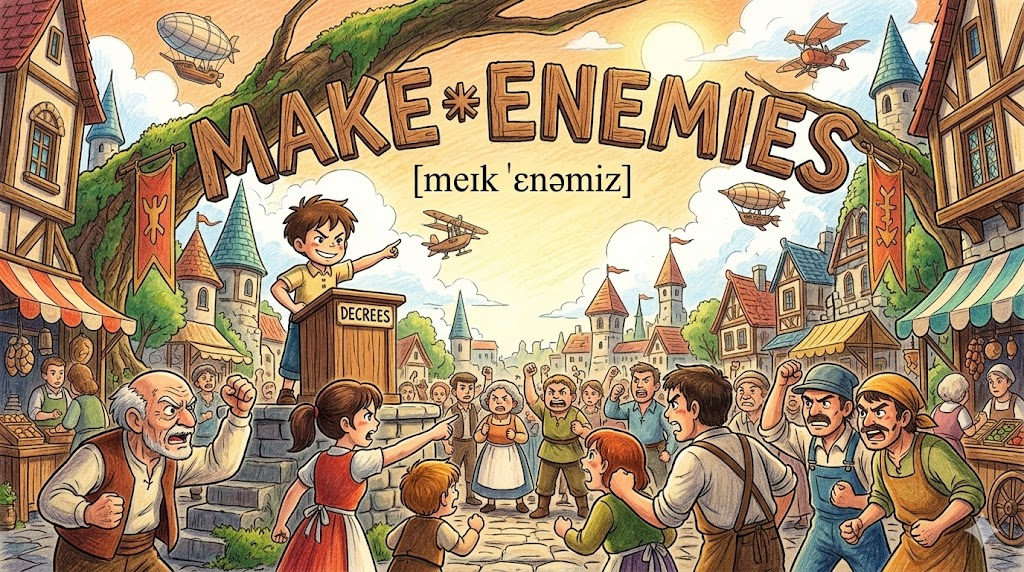| make enemies | 적을 만들다 | 말·행동으로 스스로 원한을 사서 적대감을 불러일으키는 것 |