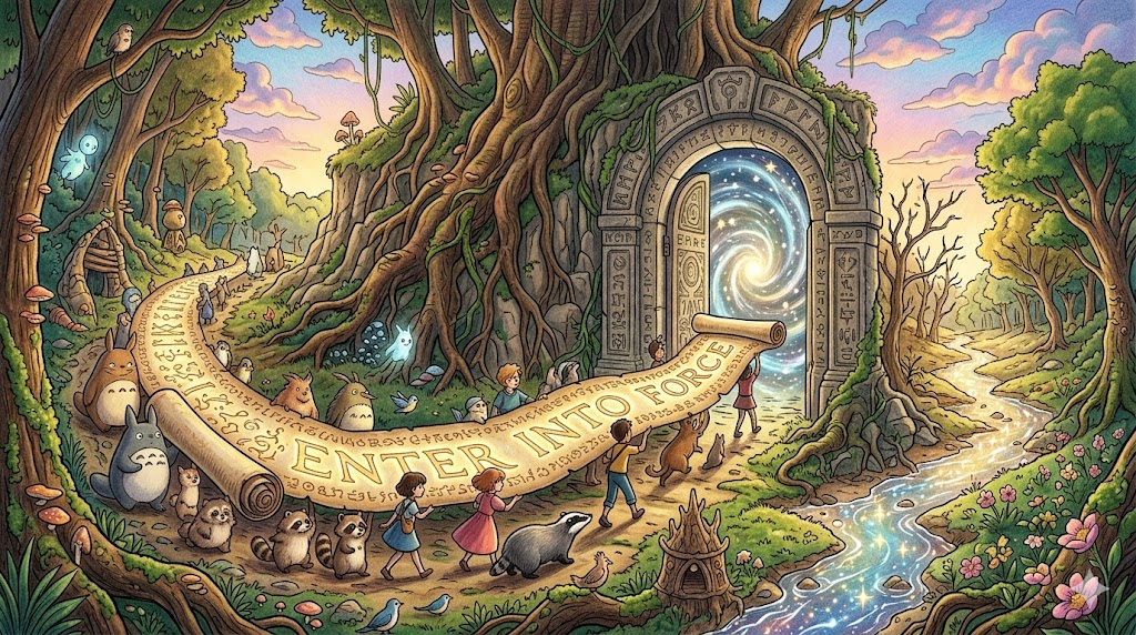 - enter into force: 법률·조약이 공식적으로 효력을 발생시키기 시작하다.