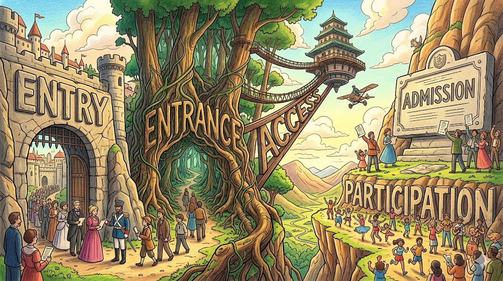 단순한 '입장(entrance)'을 훨씬 넘어, "경계선을 넘어 새로운 영역 안으로 공식적으로 진입하는 행위·자격·결과·기록" 을 모두 담은 다의어입니다. entry가 쓰이는 순간, 그것은 단순한 이동이 아니라 새로운 영역으로의 공식적 진입을 인정받는 순간입니다.