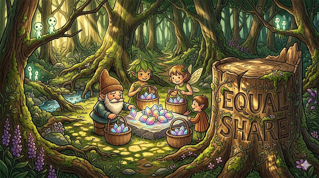 | equal share | 동등한 몫 | 모든 관계자가 차별 없이 동등하게 나누어 갖는 균등 배분 |