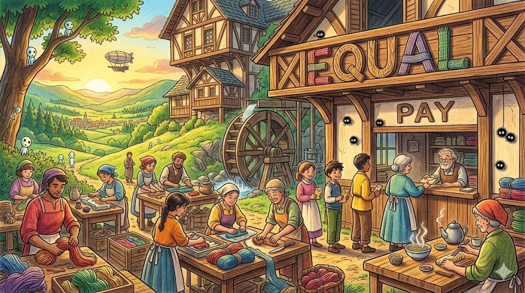 같은 일을 하는 사람들이 성별·인종 등에 관계없이 동일한 임금을 받아야 한다는 원칙을 뜻합니다. 사회·노동 분야의 핵심 표현입니다.