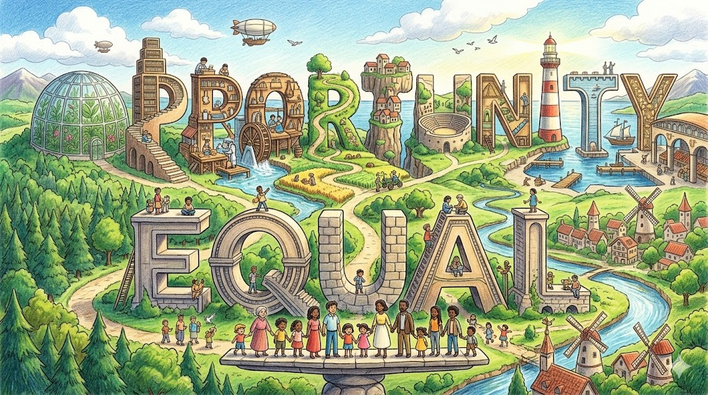 모든 사람이 동등한 출발선에서 같은 기회를 누릴 수 있는 상태를 뜻합니다. 교육·취업·사회 분야에서 핵심 원칙으로 자주 씁니다.