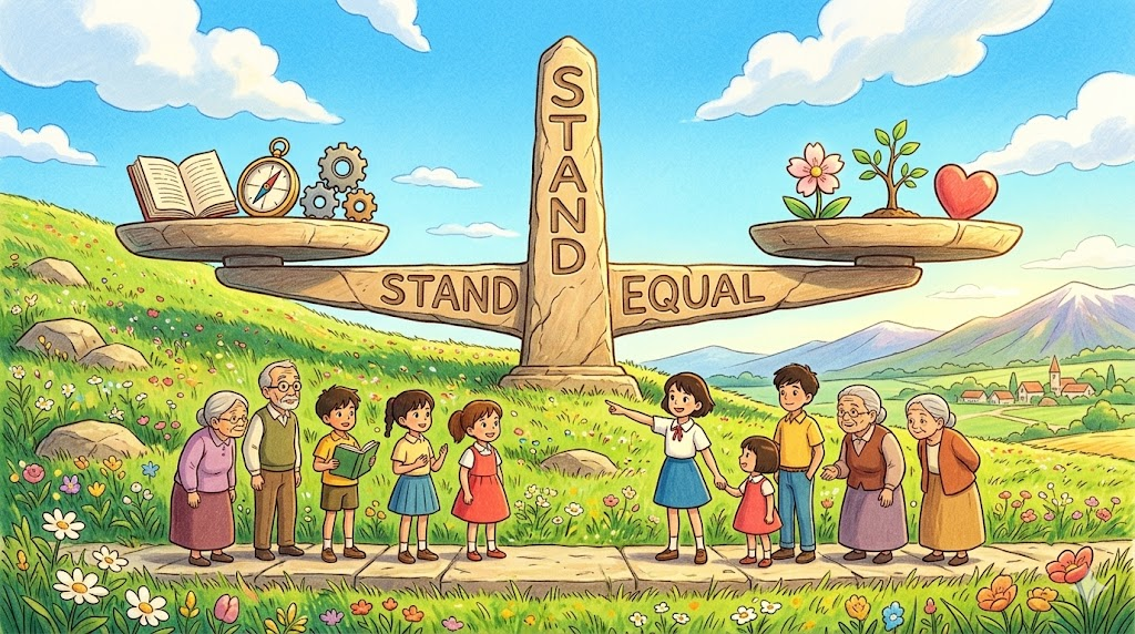 단순한 '같음(sameness)'을 훨씬 넘어, "저울처럼 어느 쪽으로도 기울지 않고 치우침 없이 균형 잡힌" 공정함과 평등의 이미지를 담고 있습니다. equal이 쓰이는 순간, 그것은 단순한 수치의 일치가 아니라 "어느 쪽도 더하거나 덜하지 않은 완전한 균형" 의 선언입니다.