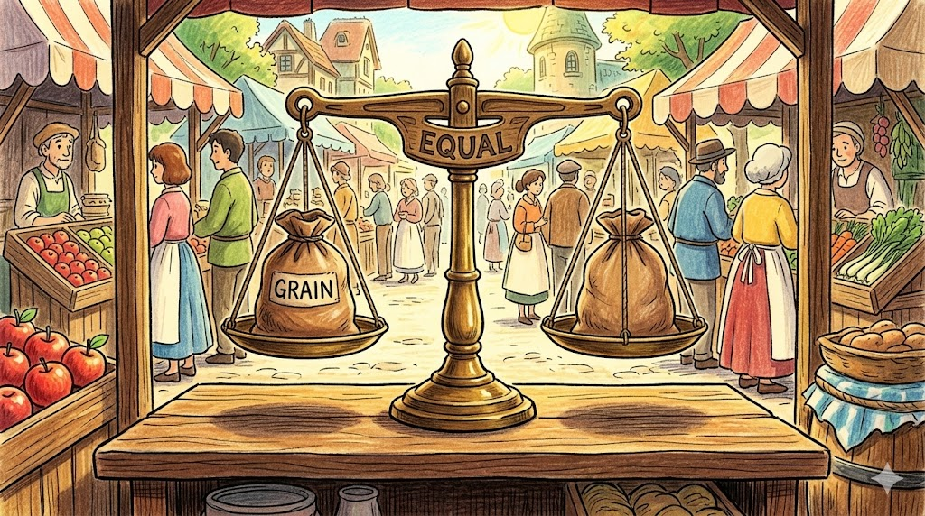 'equal'은 라틴어 aequalis(같은, 균등한) 에서 유래했으며, aequus(평평한, 균등한, 공정한) 가 핵심 어근입니다. 어원의 핵심 이미지는 "저울처럼 어느 쪽으로도 기울지 않고 완전히 평평하게 균형 잡힌 상태" 로, 수치적 동일함부터 사회적 공정함까지 "치우침 없는 균형" 이 이 단어의 본질입니다.