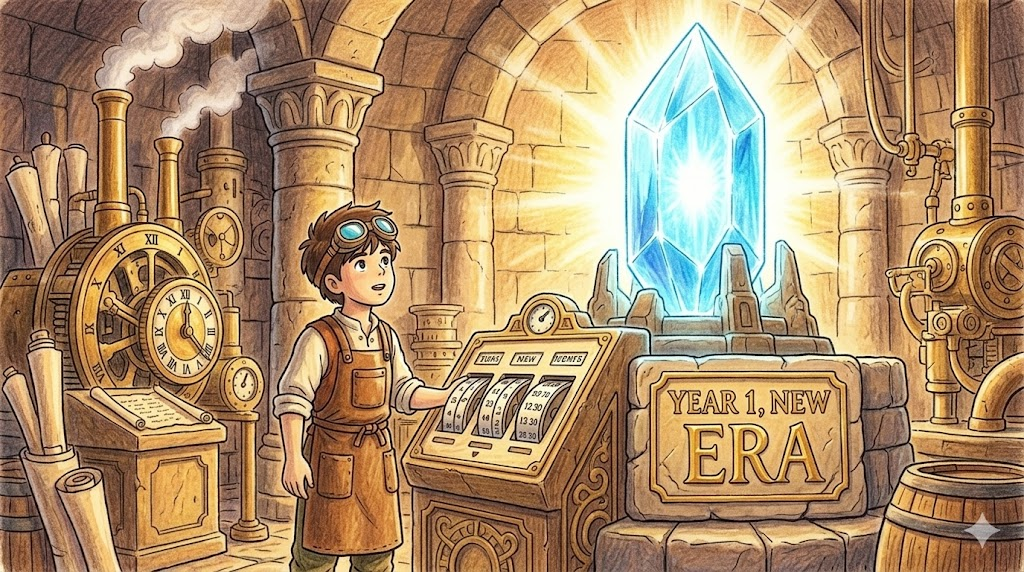 'era'는 라틴어 aera(숫자들, 계산의 기준점) 에서 유래했으며, 어원의 핵심 이미지는 "역사를 구분하는 기준점에서 시작되는 하나의 시간 덩어리" 입니다. 단순히 흘러가는 시간이 아닌 어떤 결정적 사건이나 특성을 기준으로 구분된 역사의 한 단위가 이 단어의 본질입니다.