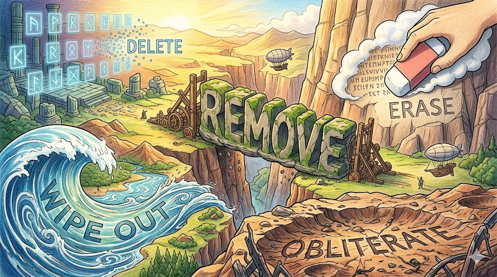 - 극단적: Erase from existence. (존재에서 지워버리다.) — 완전한 소멸의 강한 이미지
