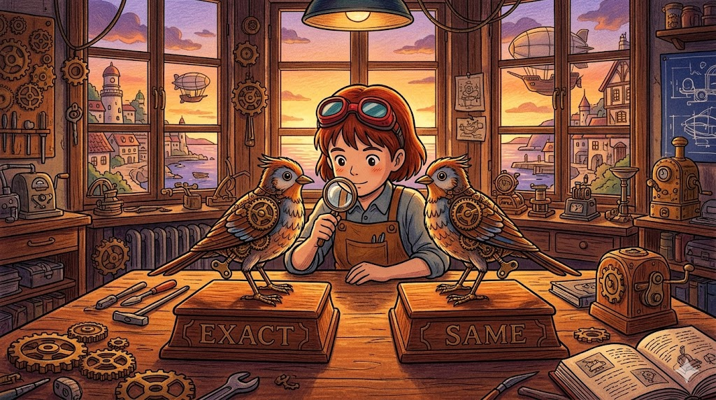 (기술/법률/일상) 조금도 다르지 않고 완전히 일치하는 것을 뜻합니다. 검색·데이터·법적 비교에서 핵심적으로 씁니다.