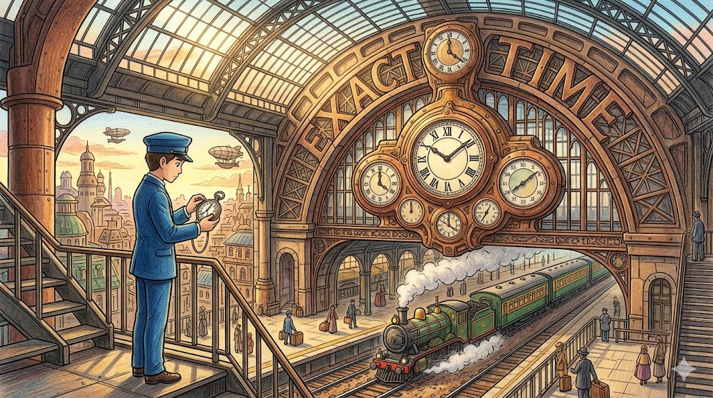 대략적인 시간이 아닌 오차 없이 정확한 시각이나 시간을 뜻합니다. 과학·법률·일상에서 시간의 정밀성이 중요할 때 씁니다.