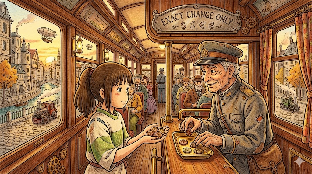 - exact change: 거스름돈이 필요 없도록 정확히 맞는 금액.