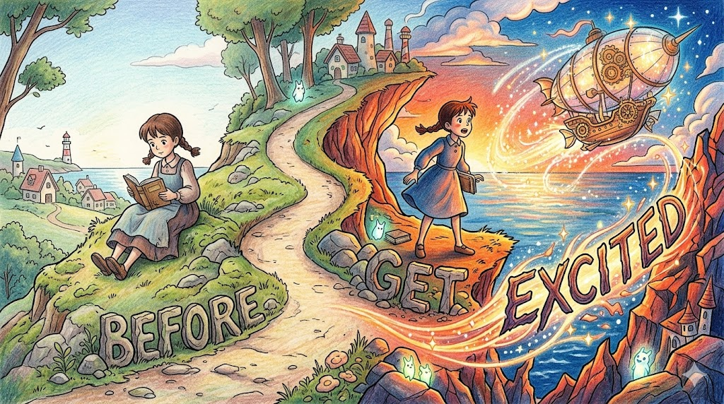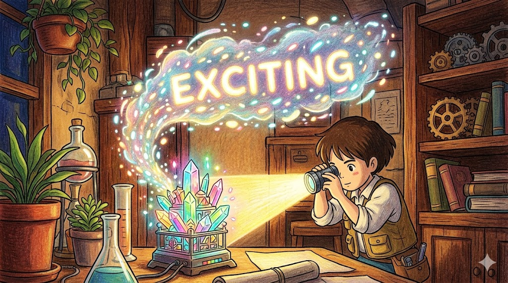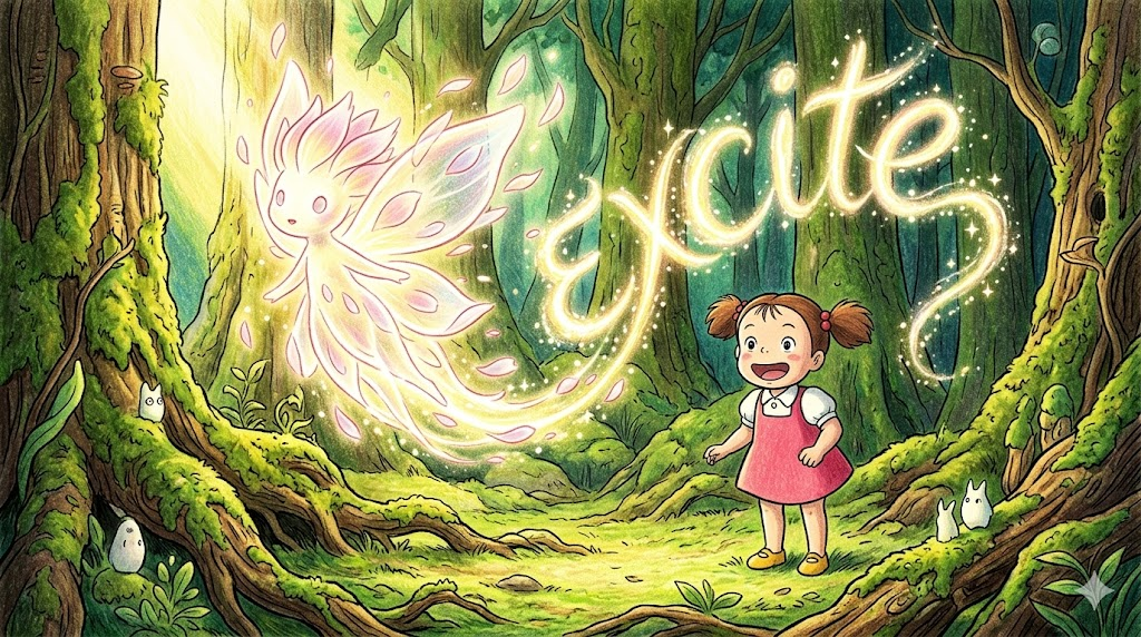🌟 초등학생 버전 excite는 마음속에 조용히 자고 있던 설렘을 "야, 일어나!" 하고 깨워서 밖으로 튀어나오게 하는 단어.