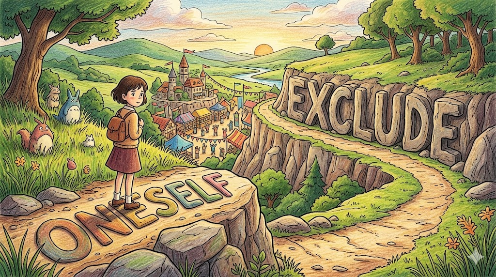 exclude는 문을 완전히 닫아 특정한 것이 절대 안으로 들어오지 못하도록 의도적이고 완전하게 차단·봉쇄하는 배제의 언어.