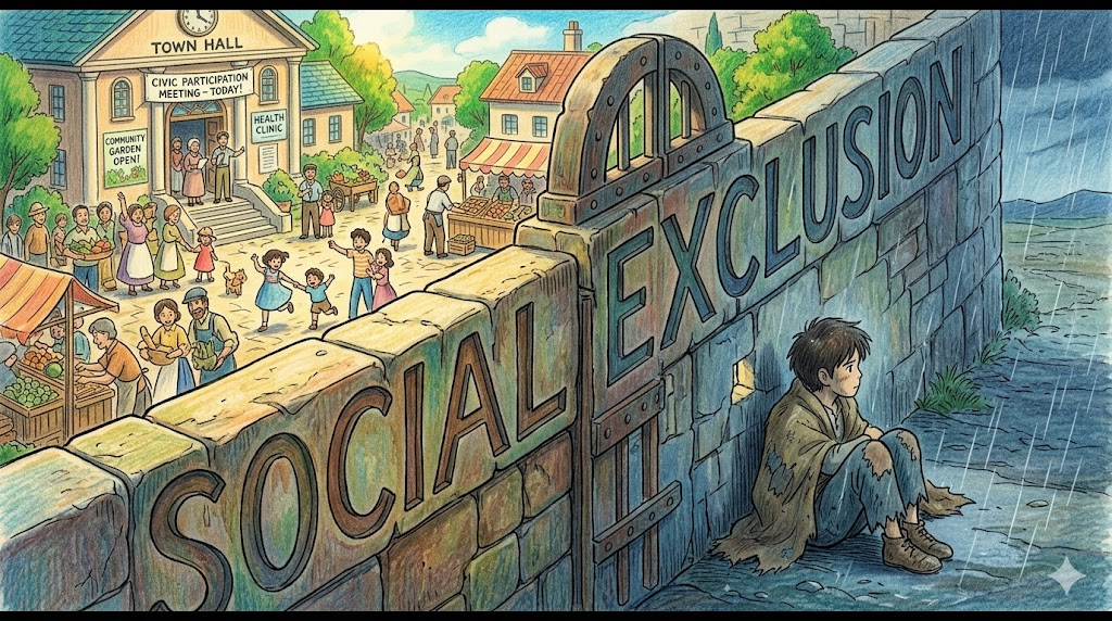 (사회/학술/수능) 개인이나 집단이 사회의 주류에서 체계적으로 배제되어 소외되는 현상을 뜻합니다. 수능 독해 사회·복지 지문의 핵심 표현입니다.