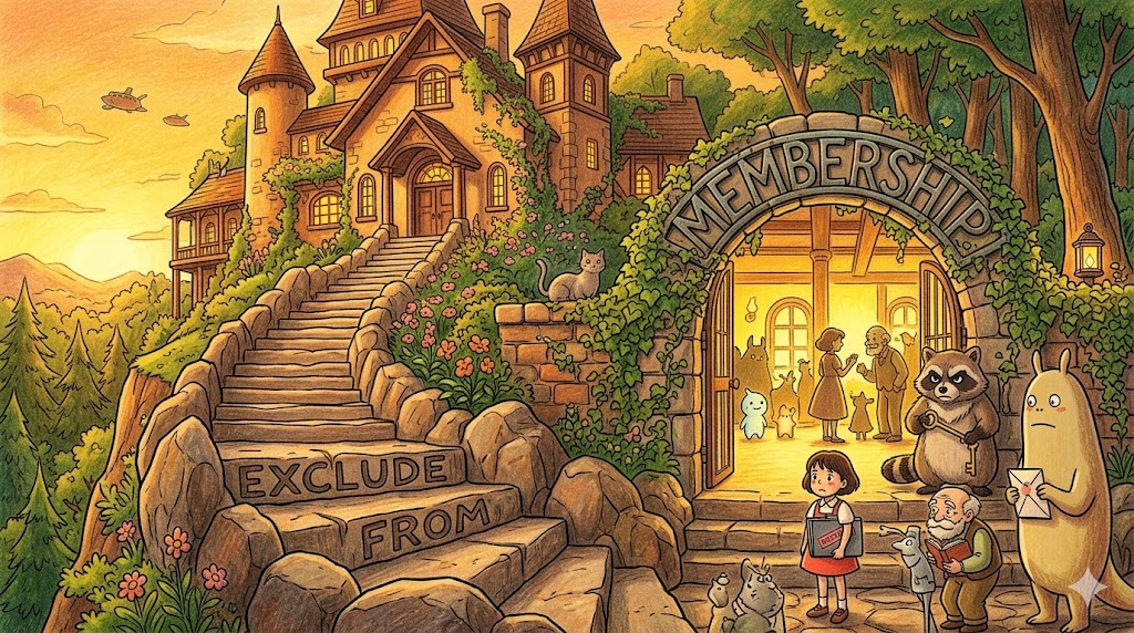 🌟 초등학생 버전 exclude는 "너는 안 돼!" 하고 문을 꽝 닫아버려서 완전히 못 들어오게 하는 단어.
