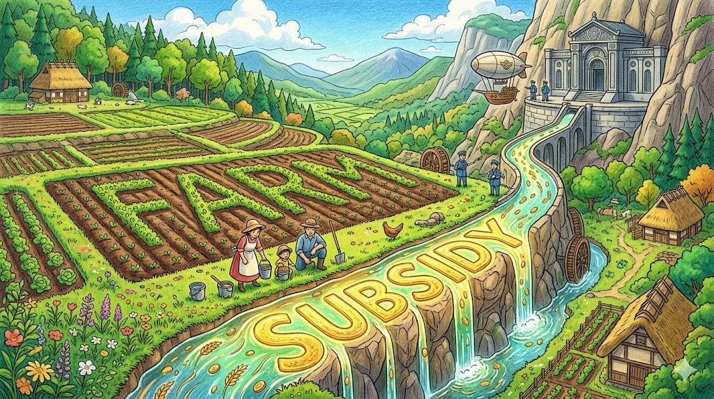 (경제/정치/수능) 정부가 농부들에게 지원하는 보조금을 뜻합니다. 수능 독해 경제·정치·사회 지문의 핵심 표현입니다.