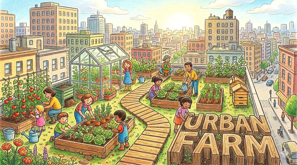 (사회/환경/수능) 도시 안에서 식품을 재배하는 농장을 뜻합니다. 수능 독해 환경·사회·과학 지문의 핵심 표현입니다.