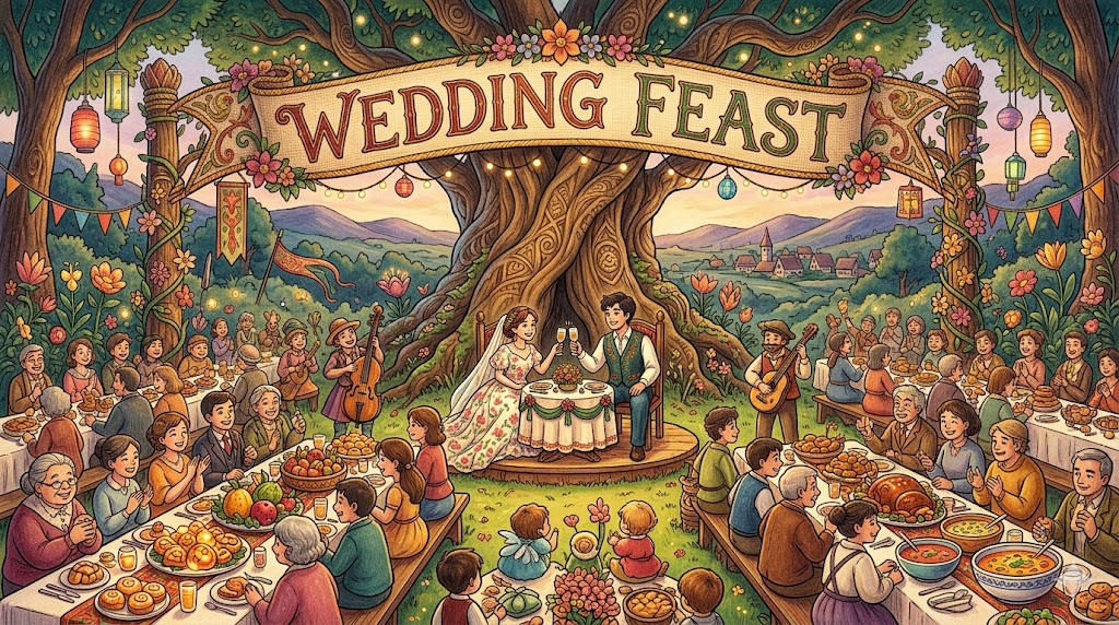 - wedding feast: 결혼식 후에 열리는 특별한 식사와 잔치.