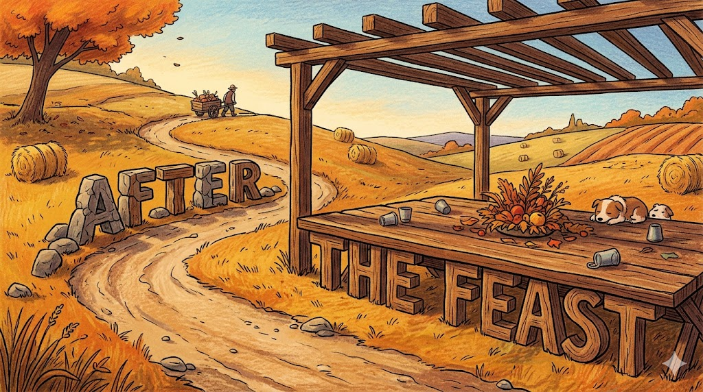 (잔치가 끝난 후에는 청소가 옵니다 — 축하가 얼마나 훌륭했든, 일상으로 돌아가는 일이 항상 따라옵니다.)