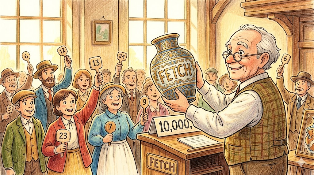 - The antique fetched £5,000 at auction. (그 골동품은 경매에서 5,000파운드에 팔렸습니다.)