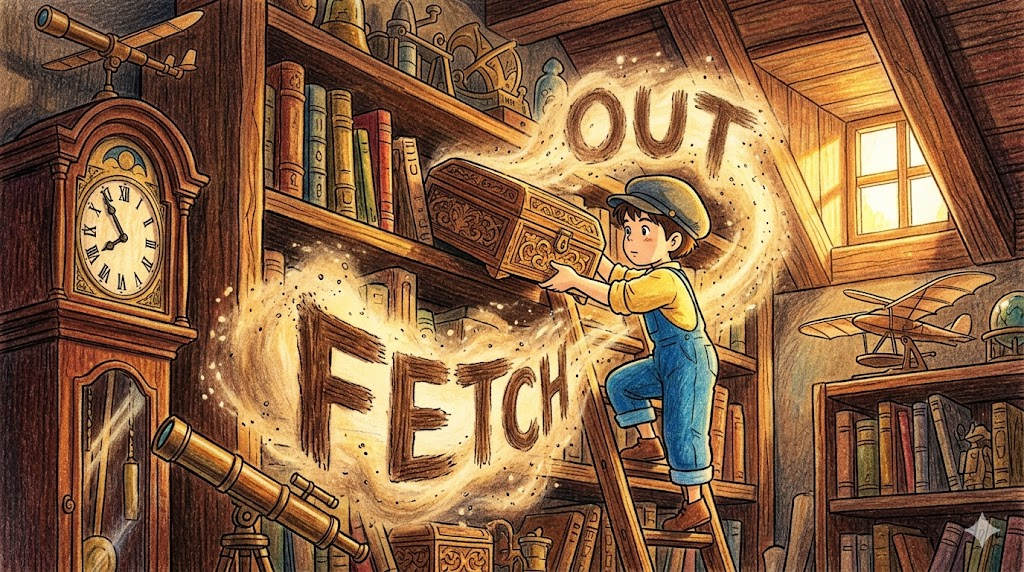 'fetch'는 고대 영어 feccan(가서 가져오다, 데려오다) 에서 유래했습니다. 어원의 핵심 이미지는 "한 곳에서 다른 곳으로 목적 있게 움직여 무언가를 가져오는" 것으로, 단순한 이동이 아닌 "특정 목적을 위해 나서서 가져오는" 의도적인 행동이 이 단어의 본질입니다.