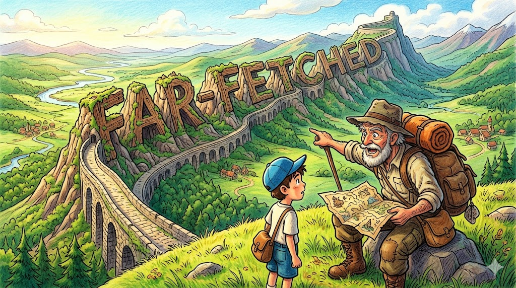 - far-fetched: 너무 멀리서 가져온 것처럼 믿기 어렵고 억지스러운