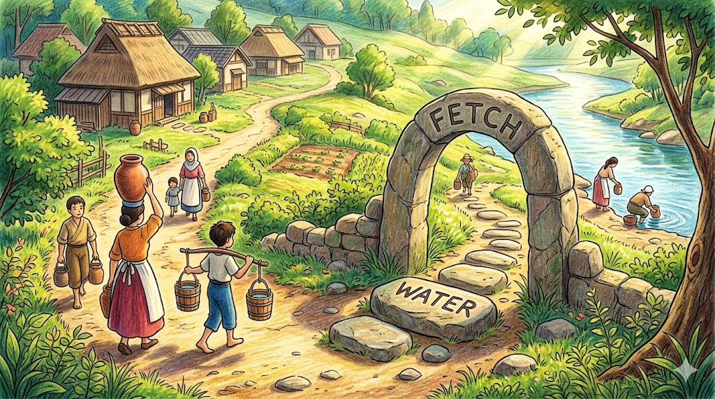 - fetch water: 멀리서 물을 길어오거나 가져오다.