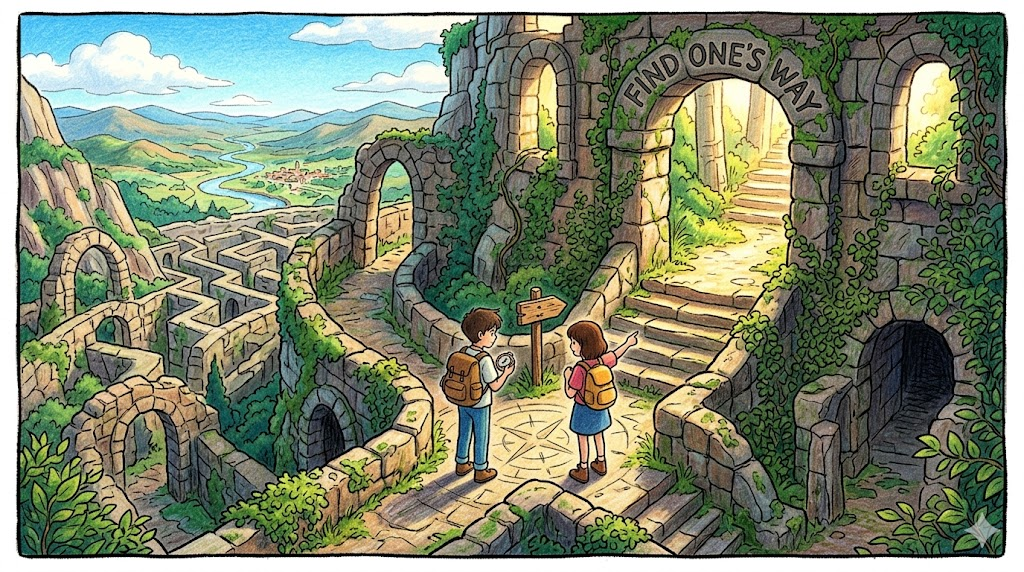 물리적으로 길을 찾는 것 외에, 어려운 상황 속에서 자신만의 방법을 찾아내는 비유적 의미로도 자주 씁니다. 수능에서는 특히 비유적 의미로 자주 출제됩니다.