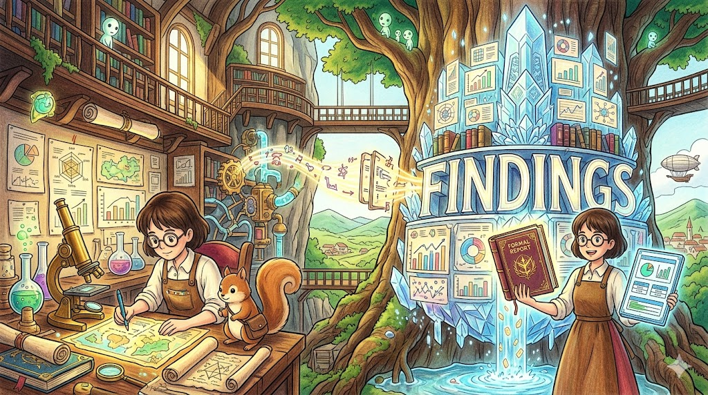 | findings | 연구·조사 결과 | 체계적 탐구의 공식적 결론 |