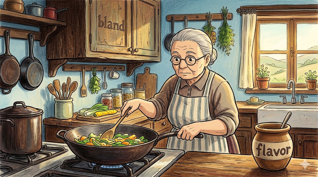 이 두 표현은 flavor의 "풍미의 질과 깊이"를 정반대 방향에서 보여줍니다. bland flavor는 특색의 부재를, rich flavor는 특색의 충만함을 각각 강조합니다.