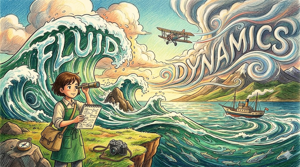 액체와 기체의 움직임·압력·속도를 수학적으로 연구하는 물리학의 한 분야입니다. 항공기 설계·기상학·혈액 순환·해양학 등 광범위한 분야에 응용됩니다.
