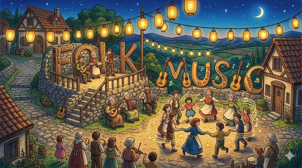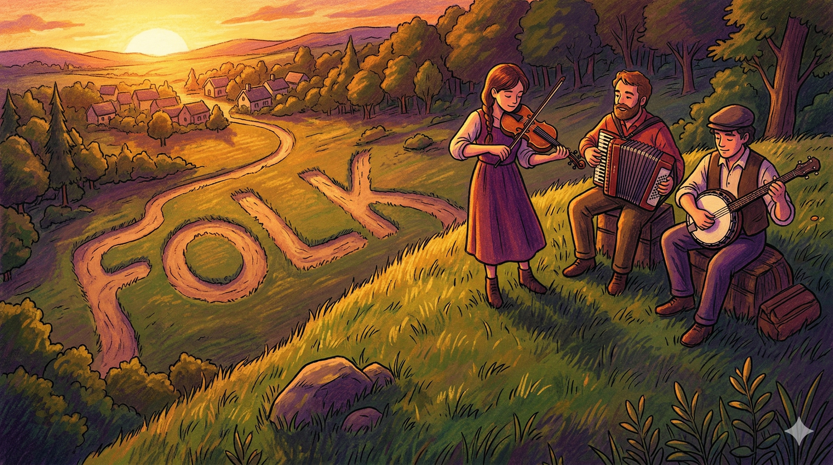 특정 지역이나 공동체의 전통적인 생활 방식·감정·역사를 담아 구전으로 전해 내려오는 음악을 뜻합니다. 작곡가가 알려지지 않은 경우가 많으며, 공동체 전체가 소유하는 집단적 표현의 뉘앙스가 강합니다.