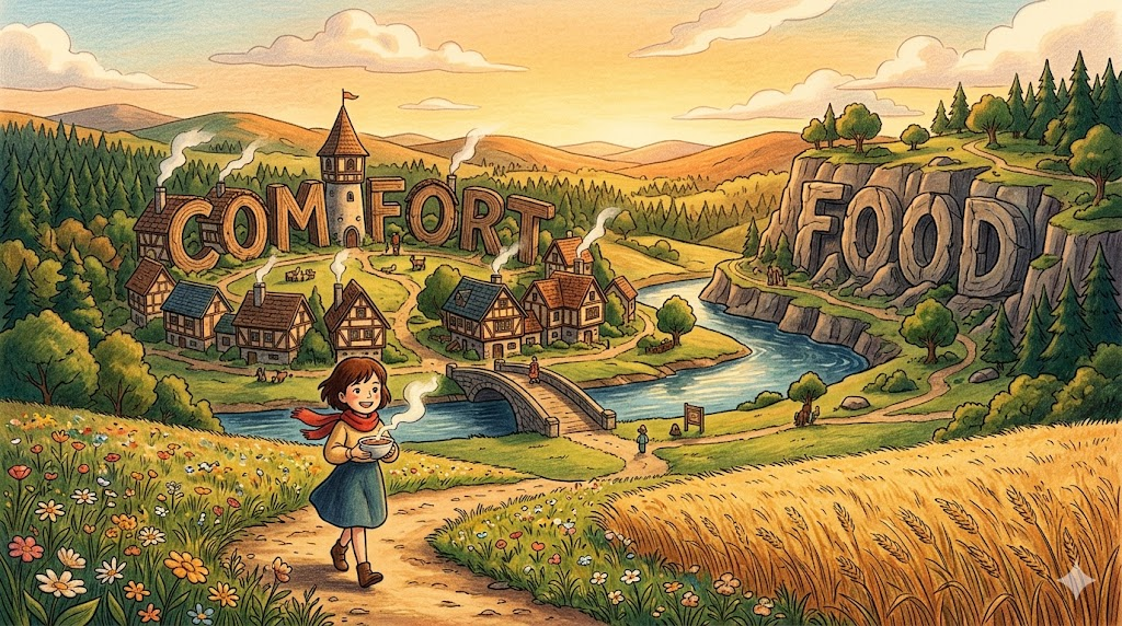 (일상/심리/수능) "위안 음식, 기분을 달래주는 음식"을 뜻합니다. 스트레스·슬픔·향수를 느낄 때 심리적 위안을 주는 음식을 가리킵니다. 수능 독해 심리·문화 지문의 핵심 표현입니다.