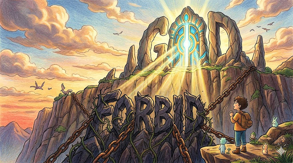 🌟 초등학생 버전 forbid는 "하지 못하게 막다, 금지하다"예요! 부모님이 "그거 하면 안 돼!"라고 할 때 바로 forbid이에요. 금지되어 있어서 오히려 더 먹고 싶어지는 것은 "forbidden fruit(금단의 열매)", "God forbid(절대 그런 일이 없기를)"도 자주 쓰여요! 과거형은 forbade, 형용사는 forbidden이에요!