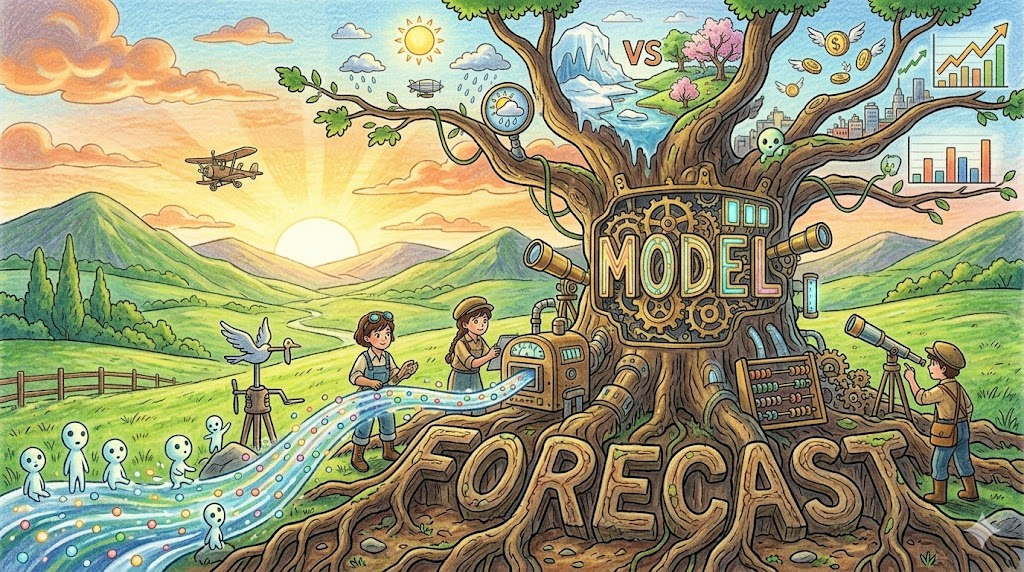 - A weather forecast, an economic forecast, and a sales forecast all share the same fundamental challenge: the future is shaped by variables that interact in ways no model can fully capture — which is why all three must be held with appropriate humility rather than false certainty. (날씨 예보, 경제 전망, 판매 예측은 모두 같은 근본적인 도전을 공유합니다: 미래는 어떤 모델도 완전히 포착할 수 없는 방식으로 상호작용하는 변수들에 의해 형성됩니다 — 그것이 세 가지 모두 거짓 확실성이 아닌 적절한 겸손함으로 받아들여져야 하는 이유입니다.)